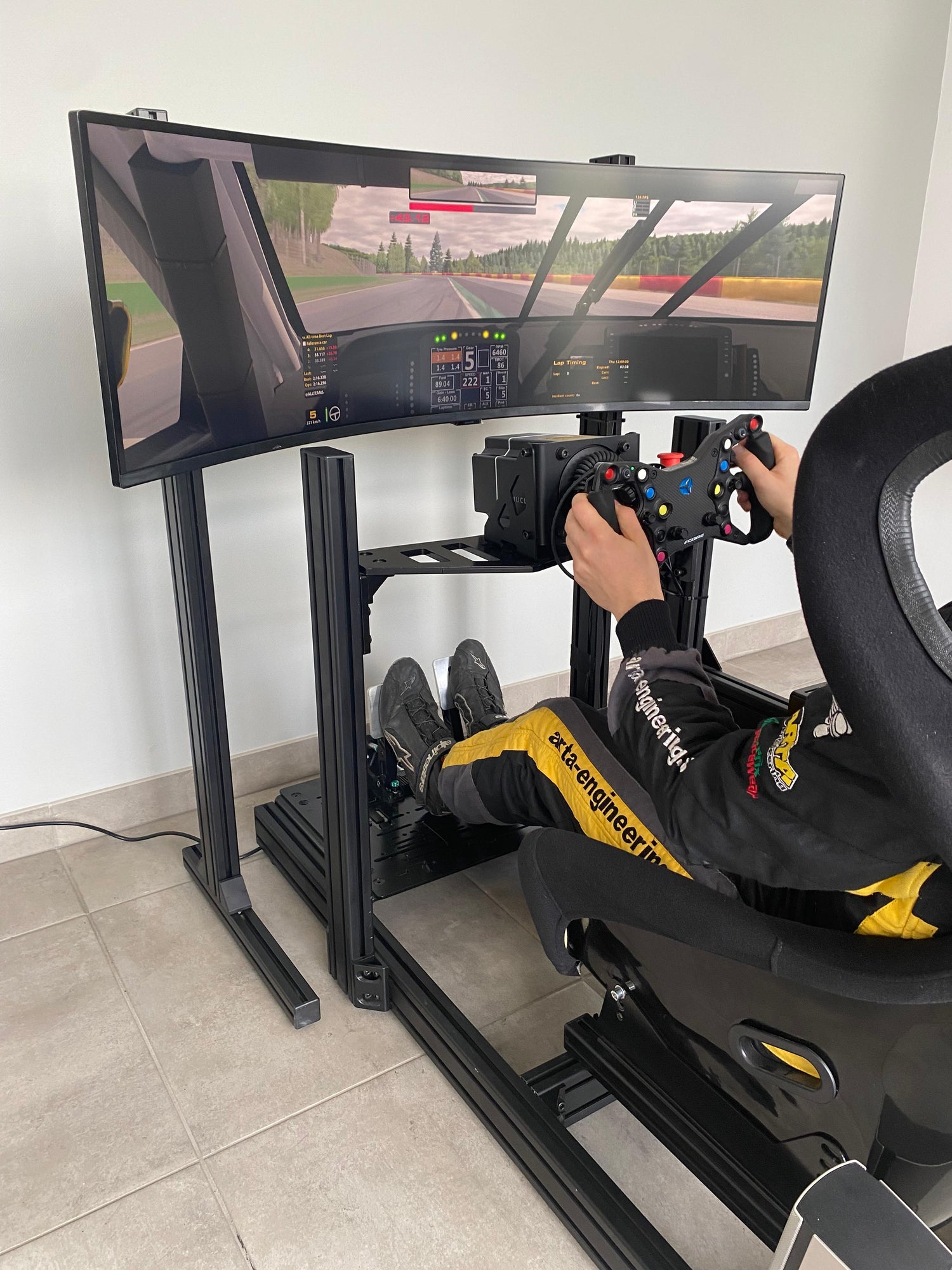 Nous disposons également d'un simulateur typé GT avec une position de conduite plus assise. Une occasion de tester des voitures de course d'exception telles que des GT4, des GT3 ou tout autre type de véhicule.